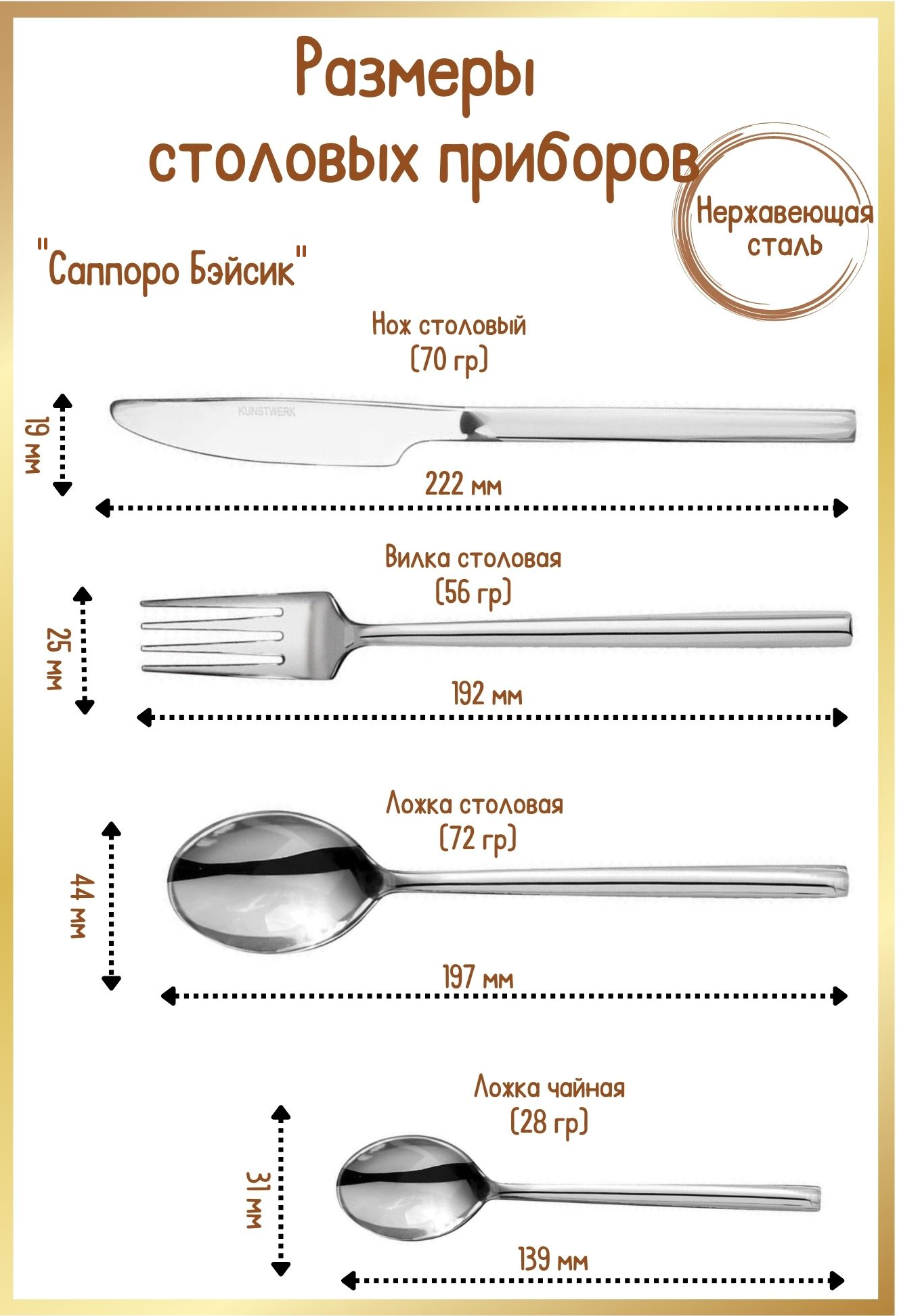ВАЖНО! Приборы этой серии можно мыть в посудомоечной машине, но в щадящем режиме, без агрессивных моющих средств и в лотке для столовых приборов, чтобы у каждого прибора была своя ячейка и они не соприкасались.